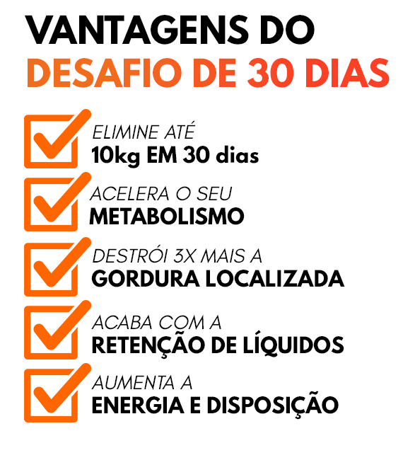 Com o Desafio de 30 dias, você vai aprender a DESTRAVAR o seu EMAGRECIMENTO de forma 100% saudável, sem deixar de comer o que você mais ama.